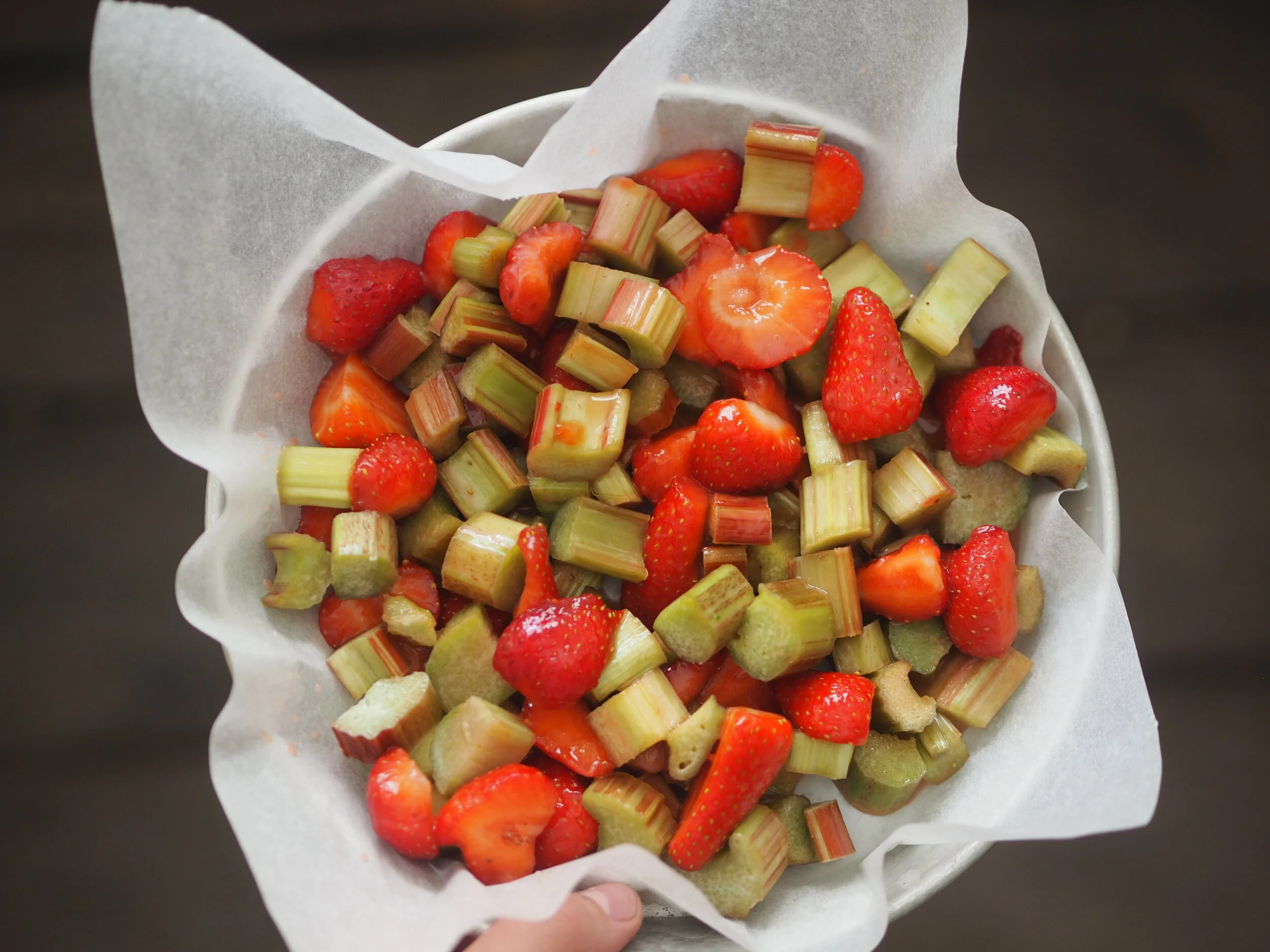 Chop the fruits into smaller pieces and mix with the lemon zest, juice sugar and corn starch. If your rhubarb is thicker, peel off the outer layer before you chop it. Have a sneaky taste and make sure you have added enough sugar as rhubarb in particular can be quite tart. Sprinkle the mixture in a pie dish. Cream sugar, syrup, vanilla paste and butter in a stand mixer or electrical whisk, add all the dry ingredients and stir together by hand. Divide evenly on top of the fruit and bake at 175 degrees Celsius for 25-30 minutes. Serve with double cream or custard.